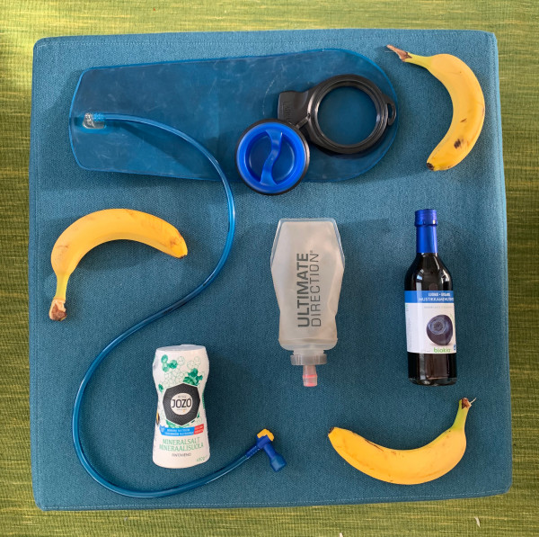 It turned out that human body needs a little bit carbonhydrates to improve water absorption. A good ratio is 6-8 % per litre which means one 375 ml bilberry juice bottle mixed with 3 litres of water.