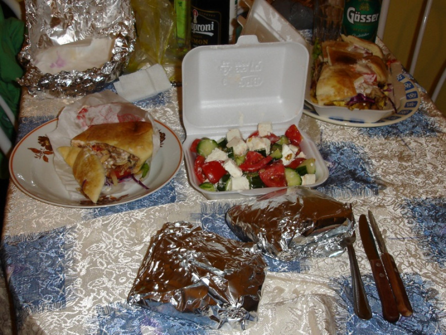 Iltapalan haemme erinomaisesta kebab-grillistÀ, joka sijaitsee majapaikkaamme vastapÀÀtÀ ja on auki kellon ympÀri.