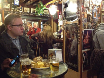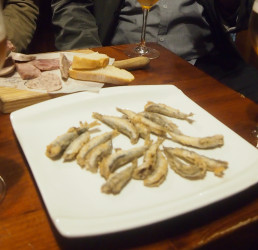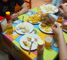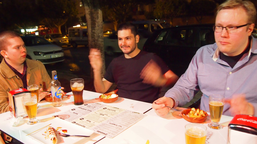 Illalla tarkistamme paikallisen viinibaarin, missÀ tynnyriviini maksaa 80 senttiÀ lasi. Ohimennen vaihdamme ajatuksia saksalaisen merimiehen sekÀ galicialaisen kalmarinkeittÀjÀn kanssa.