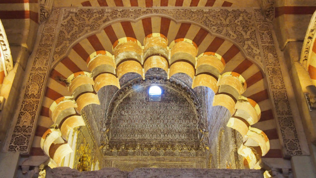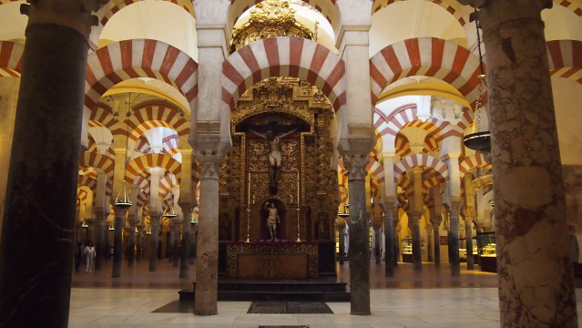 Córdobassa sijaitseva Mezquitan pyhÀttö on alunperin visigoottien katolinen kirkko, mutta vuoden 711 jÀlkeen se muutetaan ensin moskeijaksi ja 1500-luvulla takaisin katoliseksi katedraaliksi (viite). Rakennusteknisesti Mezquita on siis kirkon ja moskeijan hybridi.