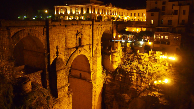 IltahÀmÀrÀssÀ tarkistamme Rondan pÀÀkohteen, 120 metriÀ korkean Puente Nuevo -sillan.