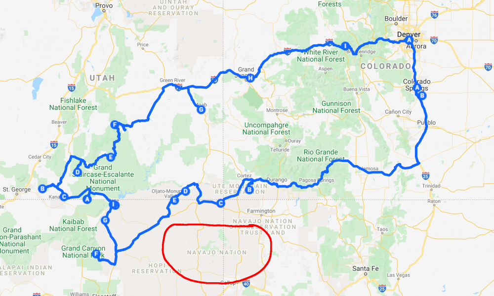 Matkamme teemat syntyvät nopeasti. Ihmeiden ja juustohampurilaisten lisäksi tutustumme mantereen varhaishistoriaan, erityisesti Navajojen maahan (viite).