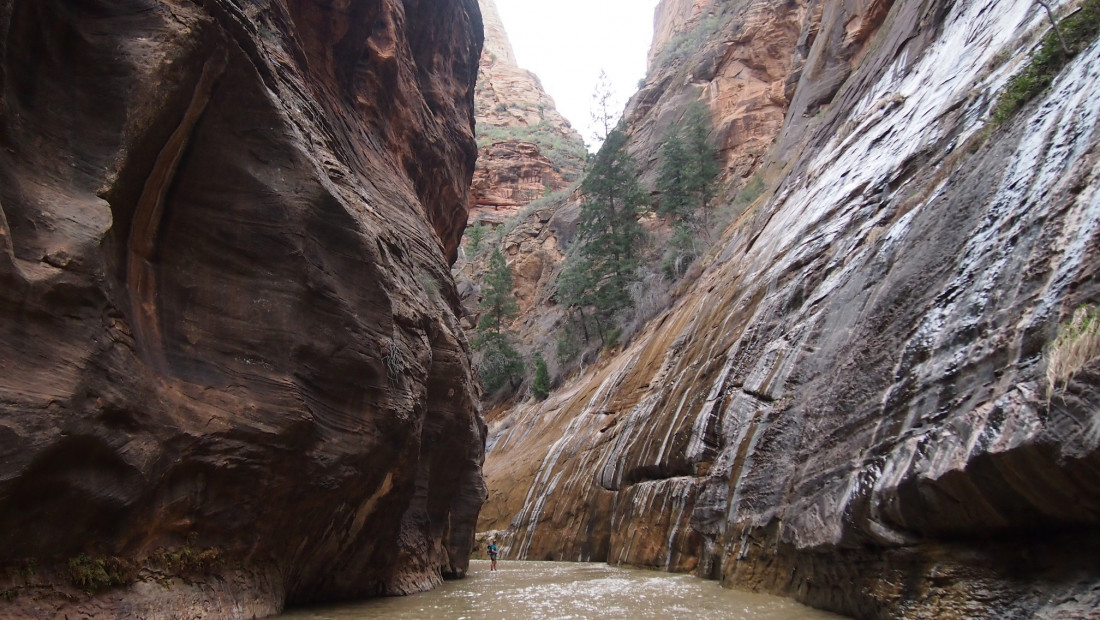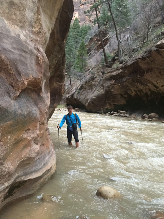 Enkeltennousun jälkeen syömme kahdeksan munkkia ja vedämme jalkaan neopreenisukat. Seuraava kohde on The Narrows (viite).