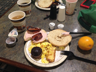 Aamulla haukkaamme amerikkalaisia makkaroita eli jauhelihatankoja sekä pannukakkua saksanpähkinöillä. Pannukakkukoneen minimiannoskoko on kaksi pannukakkua. Päivän pääkohde on Bryce Canyon (viite).