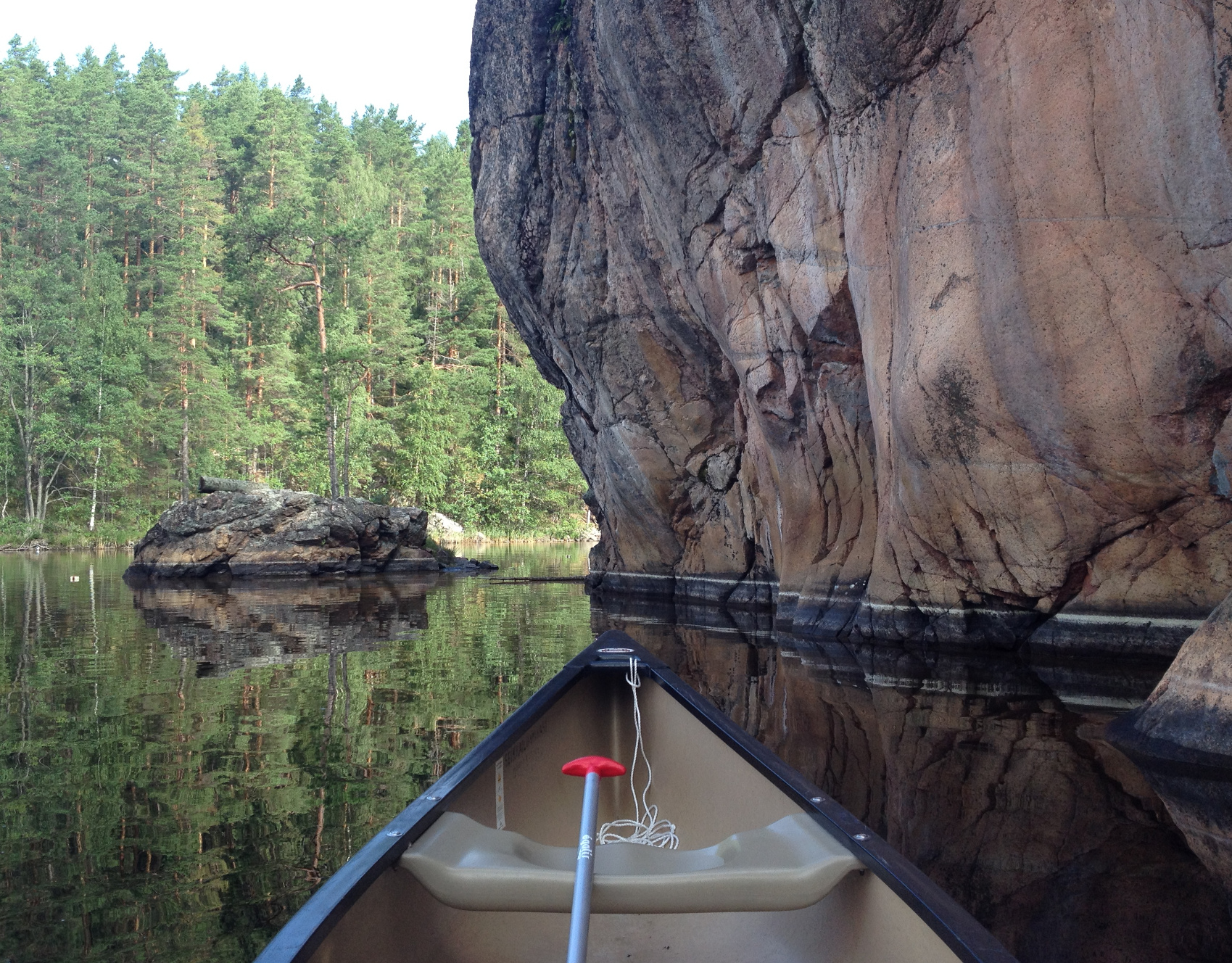 Kanootissa olemme iltayhdeksältä. Hillosensalmelta melonta ensimmäisen yÜn leiripaikkaan Karhulahteen on sopiva lämmittely (n. 6 km).